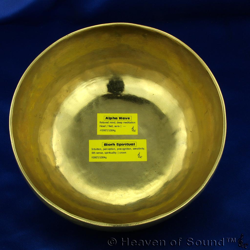 Healing Frequencies Audio Sample Recommended Accessories This is a nice polished singing bowl with the distinctive hammer marks of its making smoothed to sinuous ripples. Its healing vibration is great for deep meditation, contemplation and prayer as well as spiritual development. This Himalayan singing bowl has a powerful tone with a strong binaural beat, and a great sustain. This unique bowl was hand selected and especially curated for you, hand-made from highest quality bell bronze. PLUS, it is a carefully analyzed Heaven of Sound certified sound healing instrument!certified instrument, too! Diameter: 20.5 cm (8 inch), Height: 9 cm... View full product details